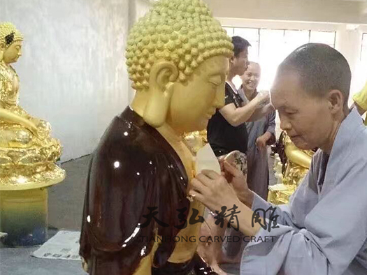 灵瑞寺位于湖南省长沙市岳麓区莲花镇,是中国佛教净土宗女众专修道场,秉承着善导大师“一向专称”的宗旨,专弘专念“南无阿弥陀佛”六字洪名。于2016年年初,来我天弘精雕公司联系雕塑阿弥陀佛佛像,现已圆满竣工。