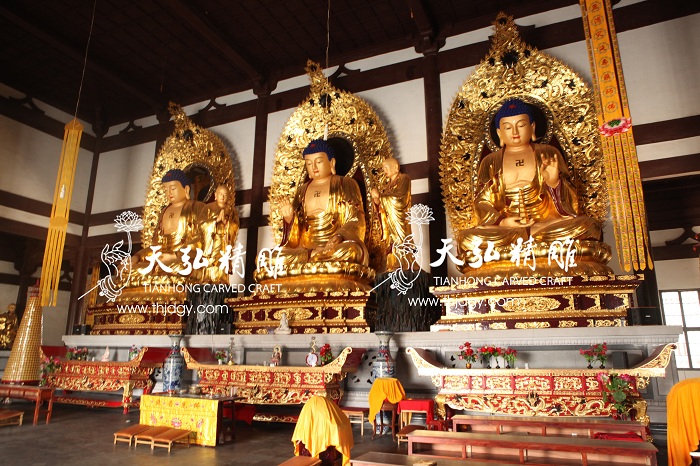 三宝佛两弟子贴金完工